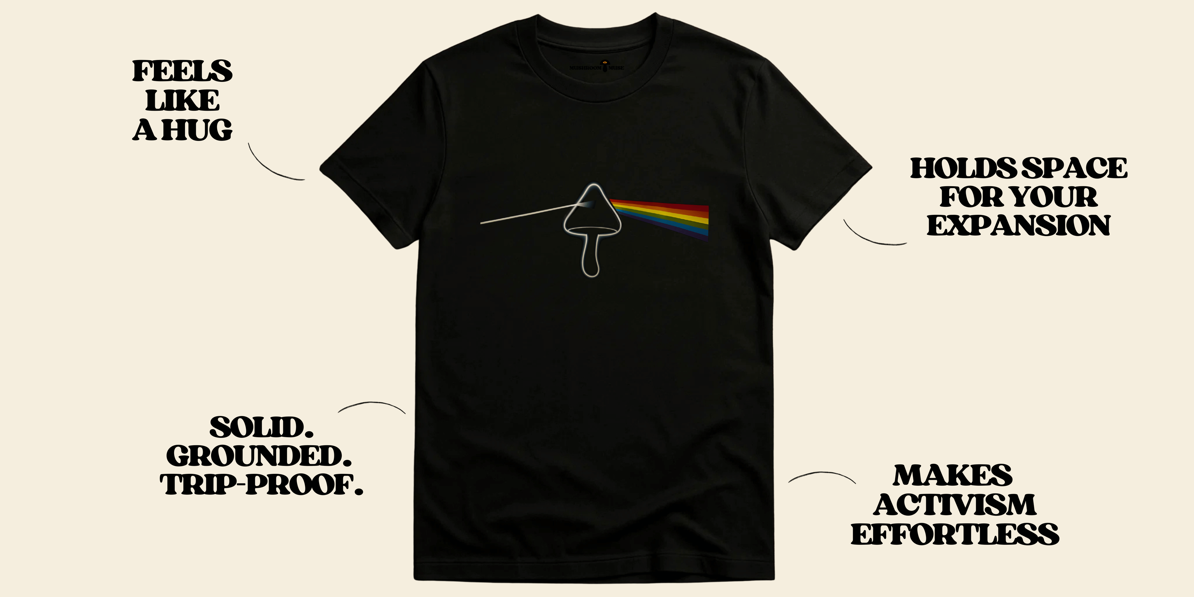 The Bright Side of the Shroom: taking mushrooms out of the shadows and into the light. Wear your psychedelic pride out loud!